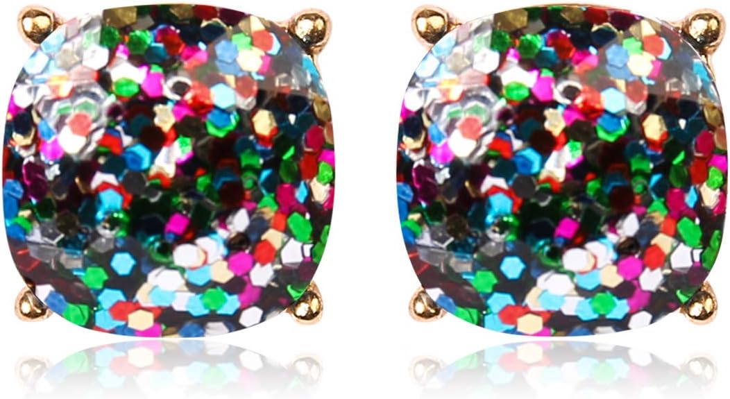 Faceted Jewel Statement Stud Earrings - Square Cushion Cut Sparkly Sequin Confetti Glitter, Opalescent Animal Leopard Print