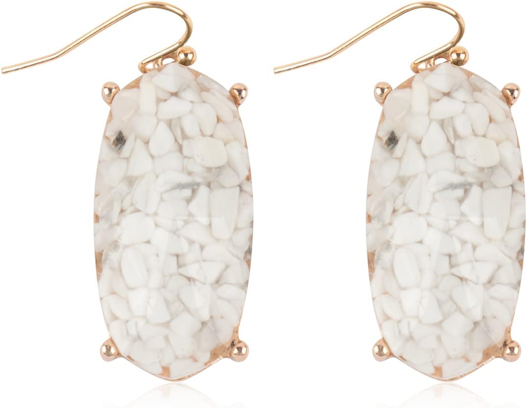 Simple Geometric Natural Stone Statement Earrings - Jewel Crystal Quartz Fringe, Oval Threader Hoops, Hexagon Studs, Shield Disc Huggie Drop